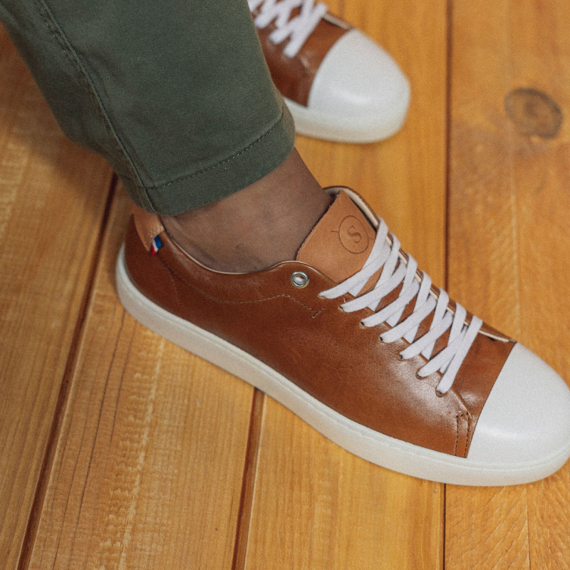 Notre modèle de baskets Abélia Camel est entièrement fabriqué en France.