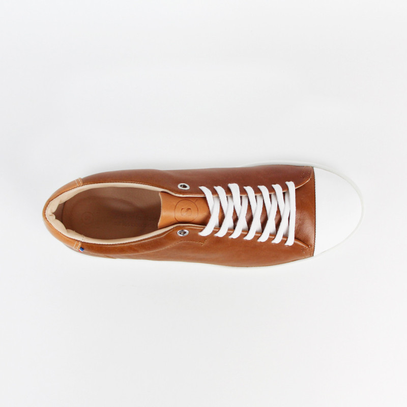 Tout en simplicité, mais colorée avec sa teinte camel chaleureuse et naturelle, cette basket se concentre sur l'essentiel avec sa ligne épurée et intemporelle. Le petit plus : cette basket est en cuir tannage végétal. Ce cuir évolue avec le temps, se patine, et peut foncer légèrement. C’est normal. Et c’est même ce qui fait tout son charme.