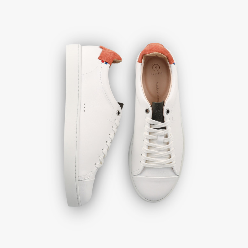 Notre modèle de baskets Abélia Blanc Orange Kaki est entièrement fabriqué en France.