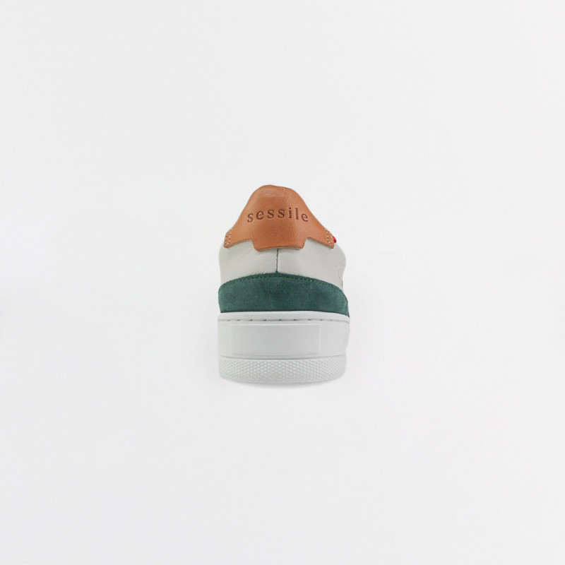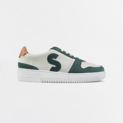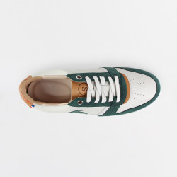 Ce modèle de baskets en cuir marie une teinte crème douce avec des accents vert sapin, gris et camel. Résolument streetwear, c'est le parfait équilibre entre ville et nature.
