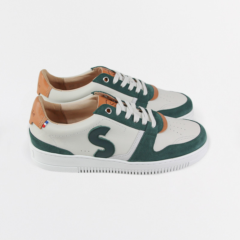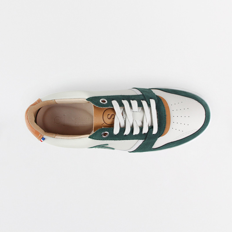 Notre modèle de baskets Bellis Crème Vert est fabriqué en France.