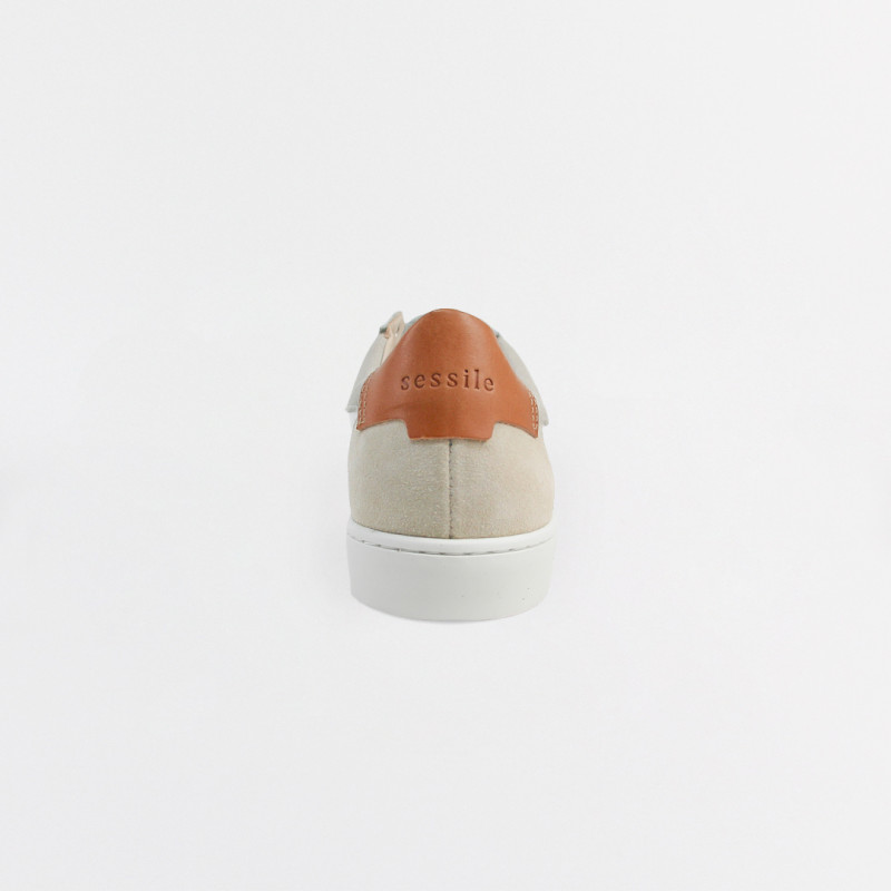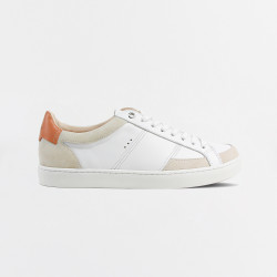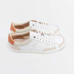 Une basket en cuir qui associe style et caractère avec son mélange subtil de cuir lisse et de cuir velours, et revisitée dans des tons doux et neutres : un beige lumineux associé à un blanc pur, le tout rehaussé par un empiècement arrière camel... Toujours aussi stylée et robuste.