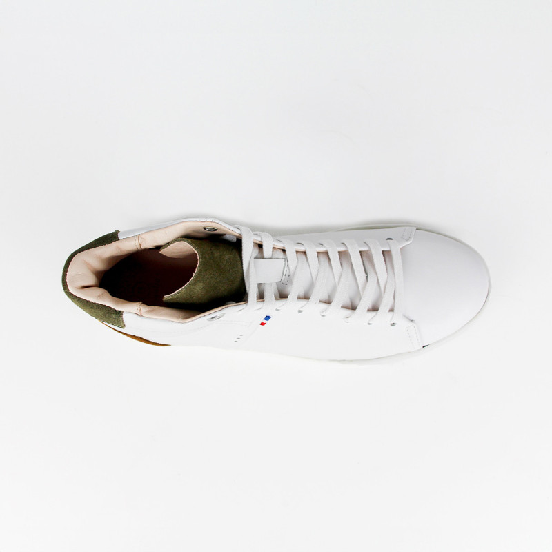 Notre modèle de baskets Kauriup Blanc Kaki Camel est entièrement fabriqué en France.