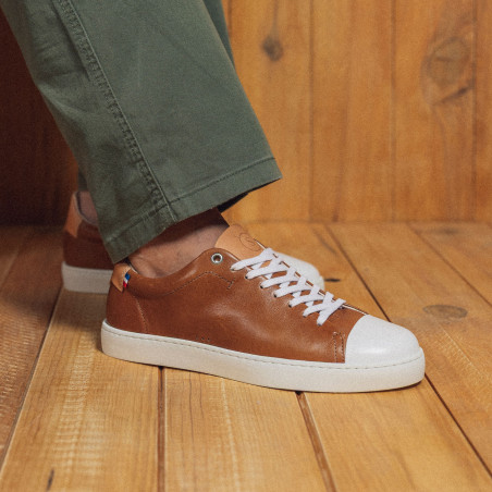 Notre modèle de baskets Abélia Camel est entièrement fabriqué en France.