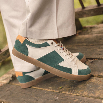 Notre modèle de baskets Hiba Crème Vert est entièrement fabriqué en France.