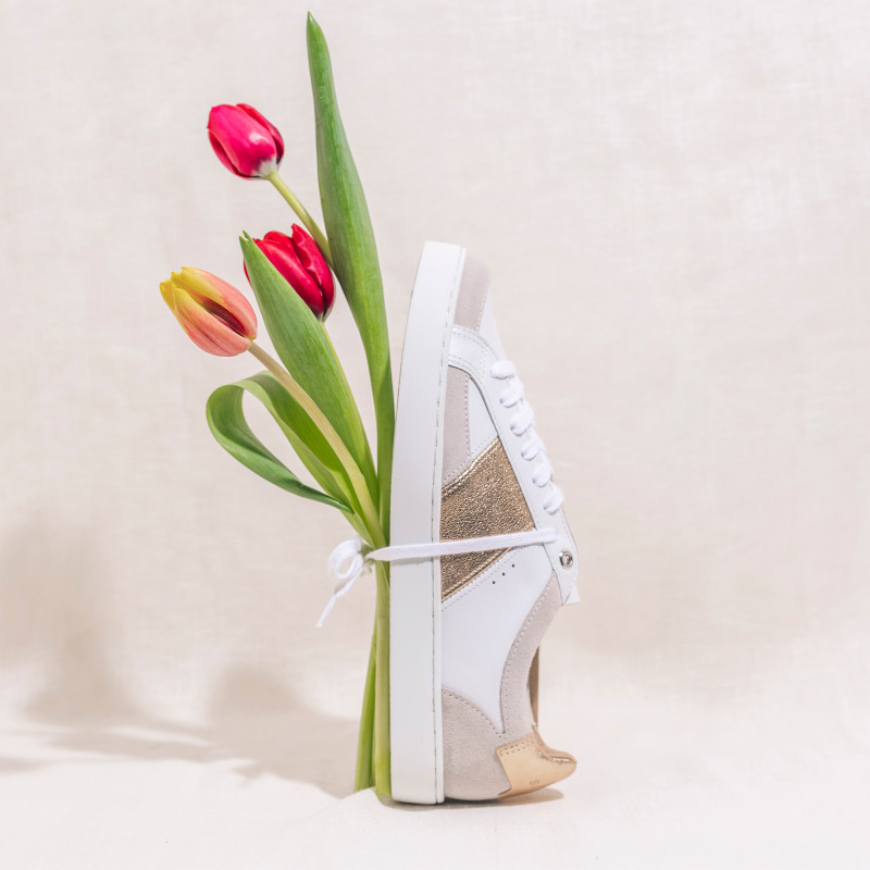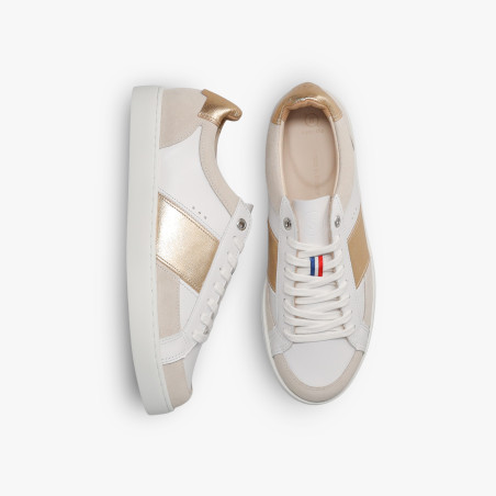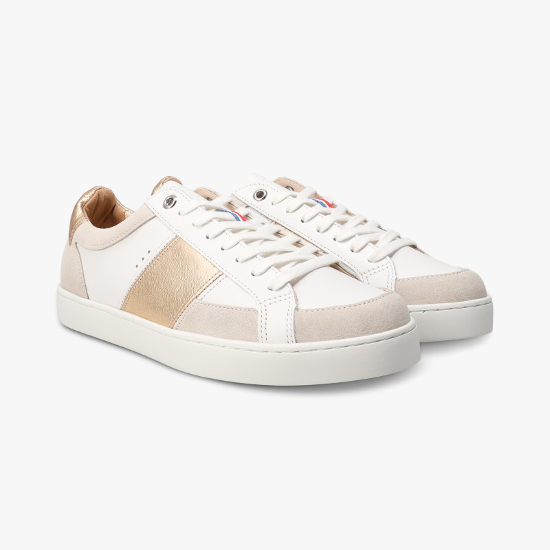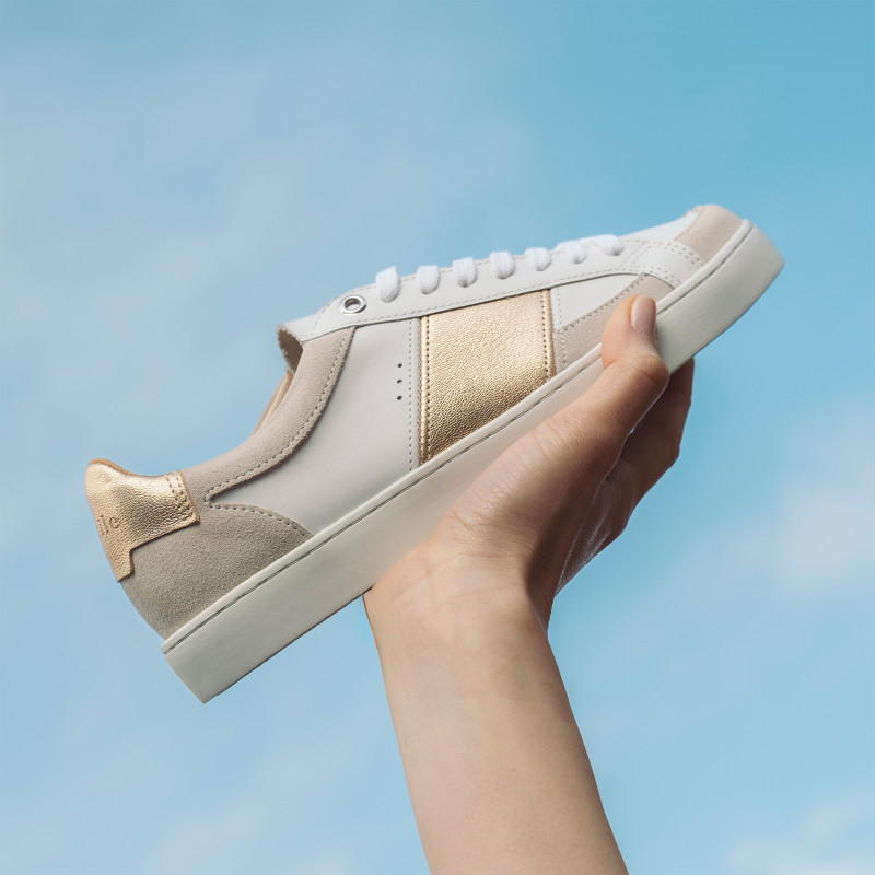 Notre modèle de baskets Hiba Blanc Or est entièrement fabriqué en France.