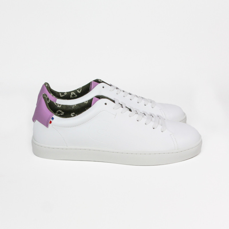Notre modèle de baskets Phénix Blanc Lilas est entièrement fabriqué en France.