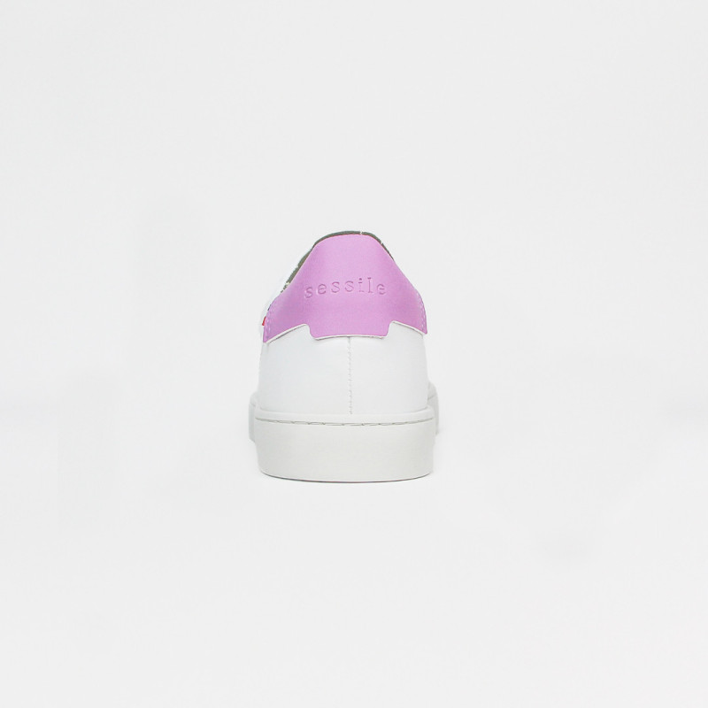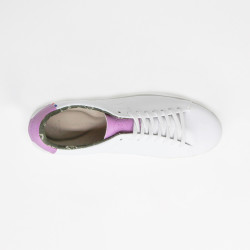 Notre modèle Phénix revient avec des couleurs vitaminées et acidulées. Laissez-vous tenter par ces baskets blanches raffinées, subtilement rehaussées par une touche envoûtante de lilas : une fusion élégante de pureté et de douceur.