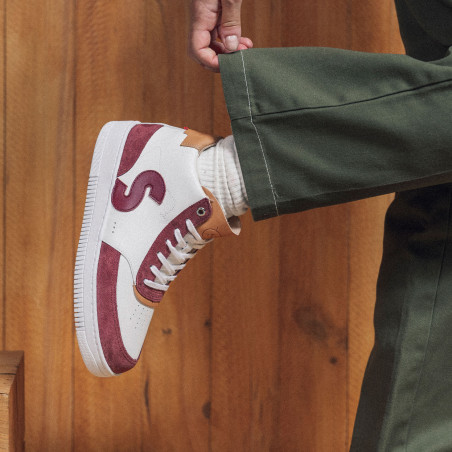Notre modèle de baskets Sureau Blanc Bordeaux est entièrement fabriqué en France.
